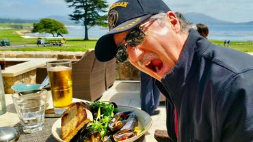This was about our 15th trip to Carmel, and we have a LONG list of recommendations you can download in the next section. However, we always find something new to do, or a new restaurant to enjoy. This trip, we booked adjoining rooms in a suite that had a kitchen. Sister Terry whipped up a mighty nice breakfast one morning. We did historical walks, and enjoyed Carmel Beach. Marty and Terry did a tour of the Tor House, which was built by hand by poet Robinson Jeffers. While having breakfast at Friar Tucks, we met Carmel Mayor Steve Dallas - then we ALL got High Heel permits from City Hall! Had a great 1st night meal at Nico's, and also enjoyed meals at Demetra Cafe and their newest sister restaurant, Portabella. Of course, we drove 17 mile drive, and enjoyed both Pebble Beach (we saw a lady score a birdie on the 18th hole!) and the Inn at Spanish Bay (saw the bagpiper play at sunset). On our Monterey day, we walked Cannery Row and view the Monterey Bay Aquarium.