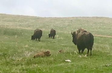 After the Needles highway, we continued to the wildlife loop in Custer Park. Even though we didn't see any Bison for a while, the drive was very peaceful. We did see a Wild Turkey that didn't mind us at all and walked right in front of our car. Seeing the Bison was worth the wait (they were on the last 1/4 of the drive) and we even saw several young calves. Photos below.