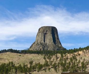 Devil's Tower. We stopped at the KOA gift shop, which is outside the Devil's Tower park. You'll find a nice selection of souvenirs AND maybe see an alien! (For those who remember the movie "Close Encounters of the Third Kind", the alien space ship was behind the Devil's Tower)
