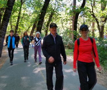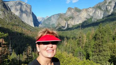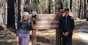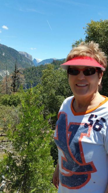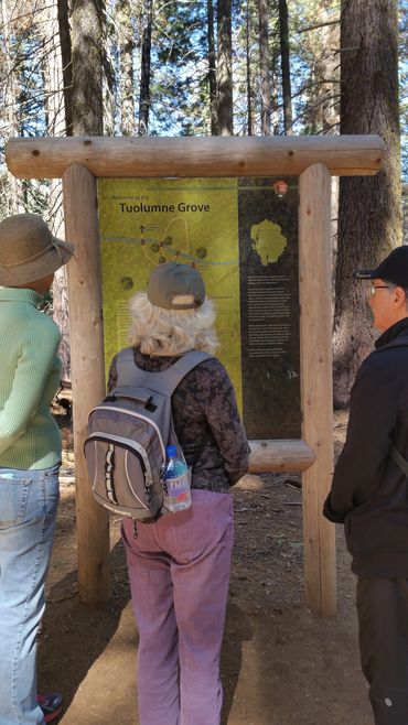We enjoyed several of the vistas in the park, and took a couple of easy hikes. Of course you can do as much as you want, including going to the top of Half Dome. My big sister Marty back packed to the top of Half Dome and actually hung her feet over the edge (about 3,000 feet straight down) - a long, long time ago. Parking at the various vistas was not a challenge except for Glacier Point. You should know it's a LOT busier in the summer. We did take a side trip to one of the Sequoia groves. It was well worth it, as you can see by the photo of Ellen on the left side of this page.