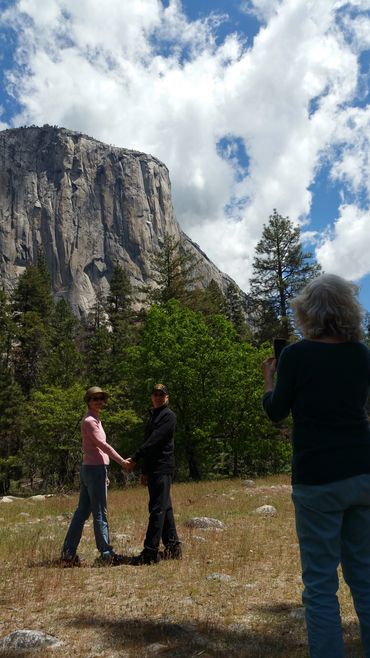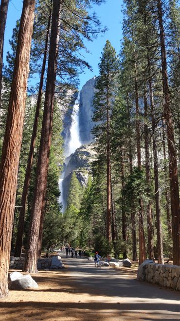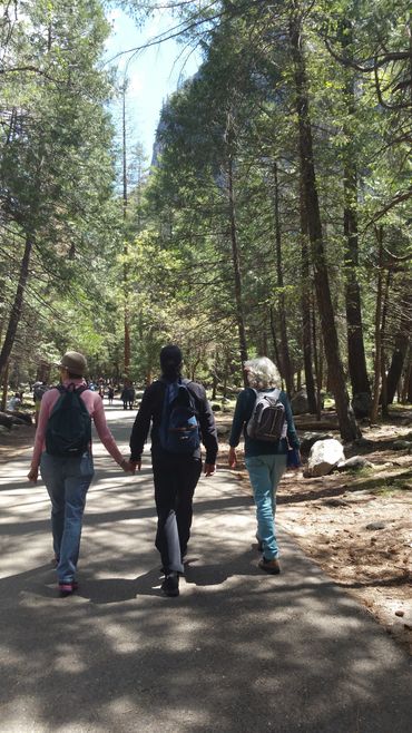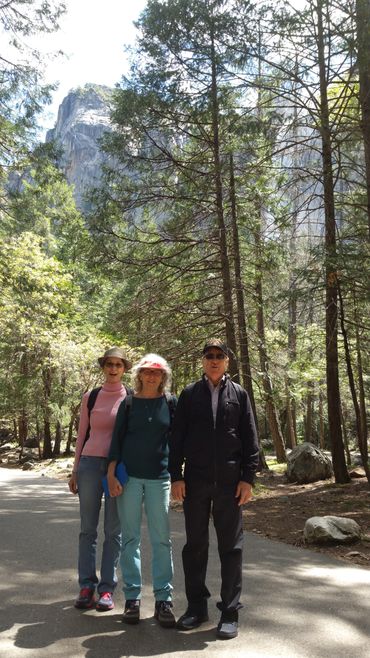 We planned our trip to be in late Spring to get: a) milder weather with extra waterfalls due to snow run-off and b) fewer kids by traveling before Memorial Day. Turned out to be a good decision! My sister Marty found the Yosemite View Lodge, which is the last hotel before you get inside the National Park. Otherwise, it can take up to a YEAR to get a room through the vendor. We met at San Jose airport and drove across the state, but it is a very interesting drive.