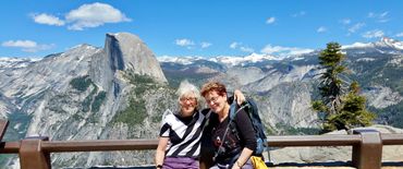 We were trying to do a selfie photo, but clicked "video" instead. Half Dome center LT & Vernal Falls on the RT